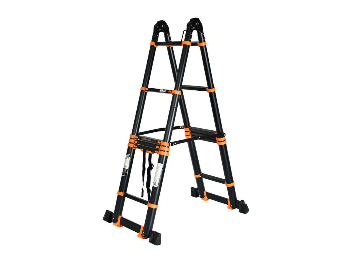 Лестница телескопическая 2-х секц. алюм. 330/660см, 2х8 ступ. 22,8кг BLACK LINE STARTUL (ST9932-066) (усиленное шарнирное соединение, ширина ступени 8см, прорезиненные колеса и доп.стабилизаторы) ST9932-066