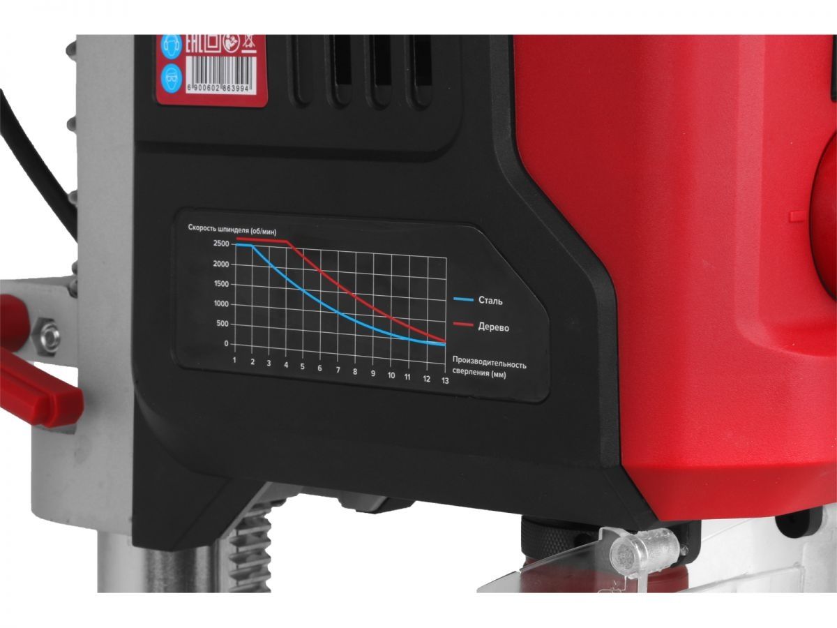 Станок вертикально-сверлильный WORTEX DB 1305 800 Вт, патрон 13 мм, 2 скор. (сверление в металле до 16 мм, быстрозажимной патрон, конст.эл, дисплей, лазер, LED-подсветка, тиски) 1318399