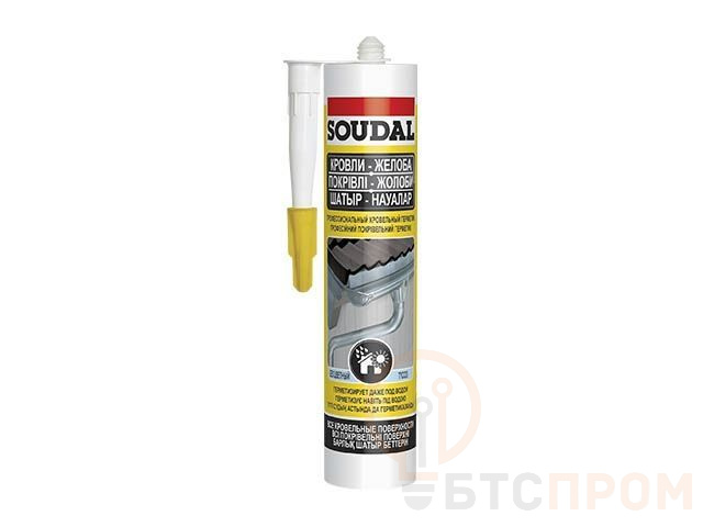 Герметик акриловый SOUDAL Профессиональный кровельный бесцветный 280 мл (122020) - кровельный герметик на основе дисперсии пластмасс с превосходной адгезией ко всем кровельным поверхностям, таким как: рубероид, оцинкованный и ламинированный листовой металл (жесть), глиняная и цементная черепица, кирпич, древесина и большинство пластмасс. Не вызывает коррозии, не окрашивает поверхности. Может применяться даже на мокрых поверхностях, например во время ливня.