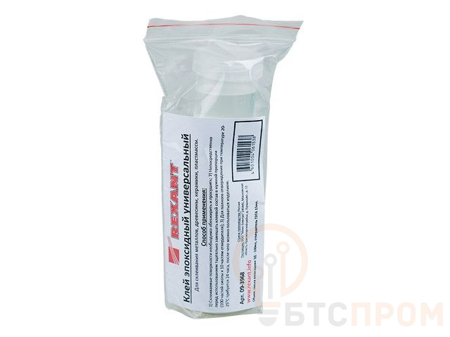 Клей эпоксидный универсальный (смолаотвердитель) 110 мл REXANT предназначен для склеивания металлов, камня, бетона, пластика, древесины, керамики или фарфора, а также для выравнивания поверхностей или избавления от трещин.