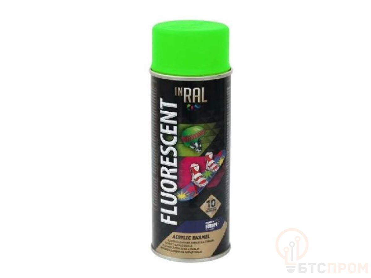 Краска-эмаль аэроз. флуоресцентная зеленый INRAL 400мл (Цвет зеленый) 26-7-5-005 фото в каталоге от BTSprom.by