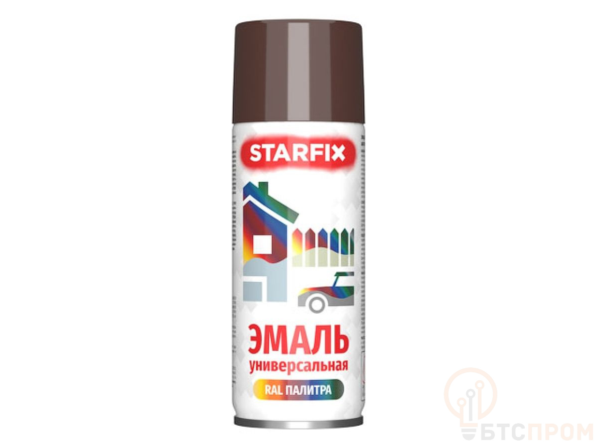 Краска-эмаль аэроз. универсальная коричневый STARFIX 520мл (8016) (Махагон коричневый, глянцевая) SM-102044-1