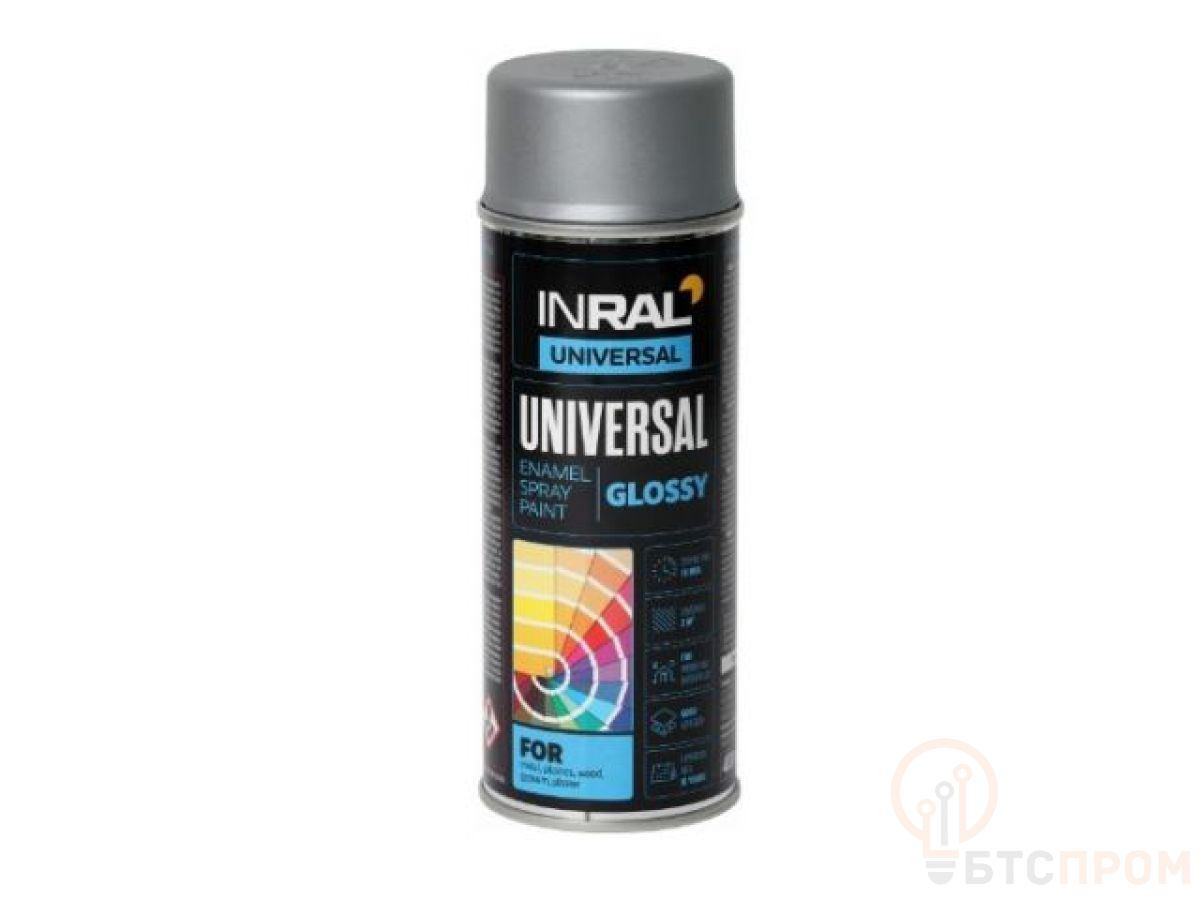 Краска-эмаль аэроз. универсальная серебряный хром INRAL 400мл (9006) (Цвет серебристый хром) 26-7-6-021