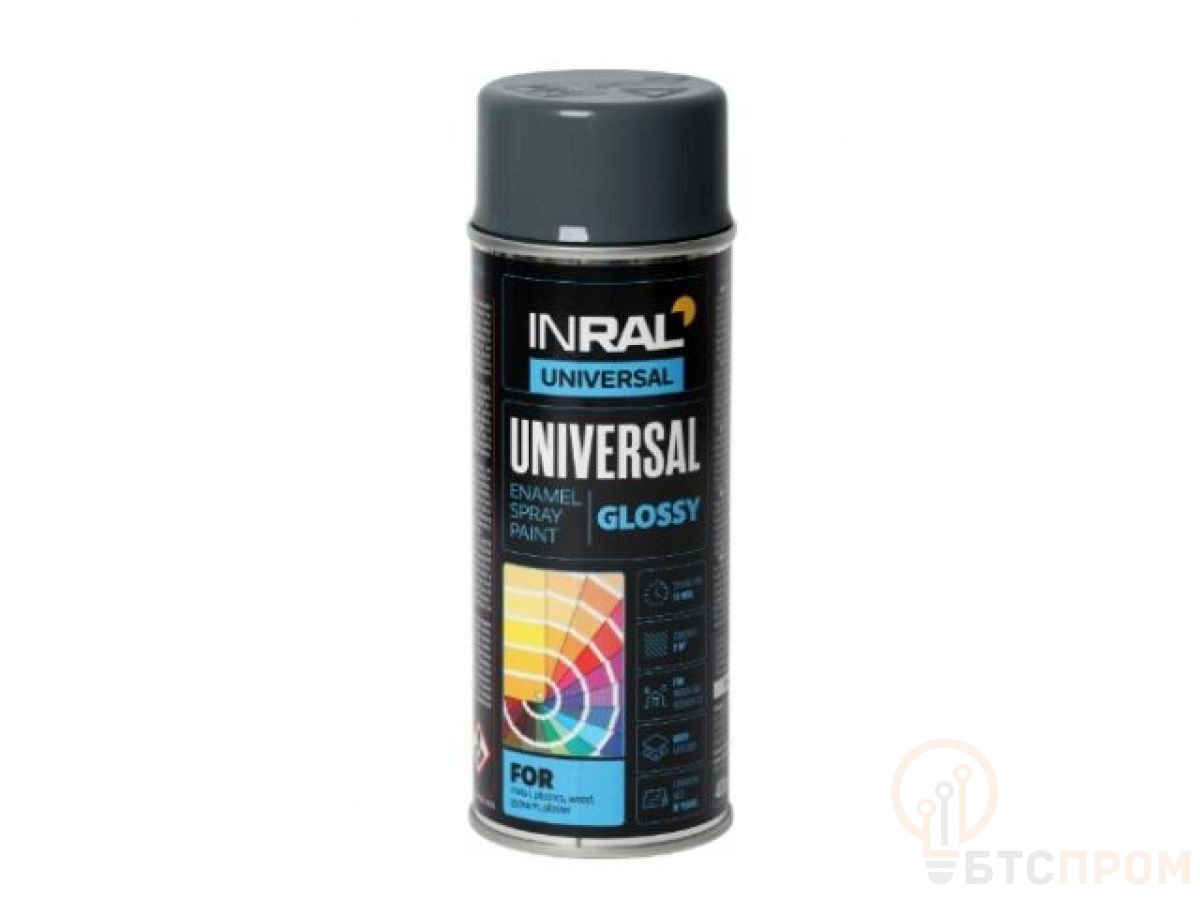 Краска-эмаль аэроз. универсальная серый INRAL 400мл (7024) (Цвет серый глянц.) 26-7-6-007 фото в каталоге от BTSprom.by