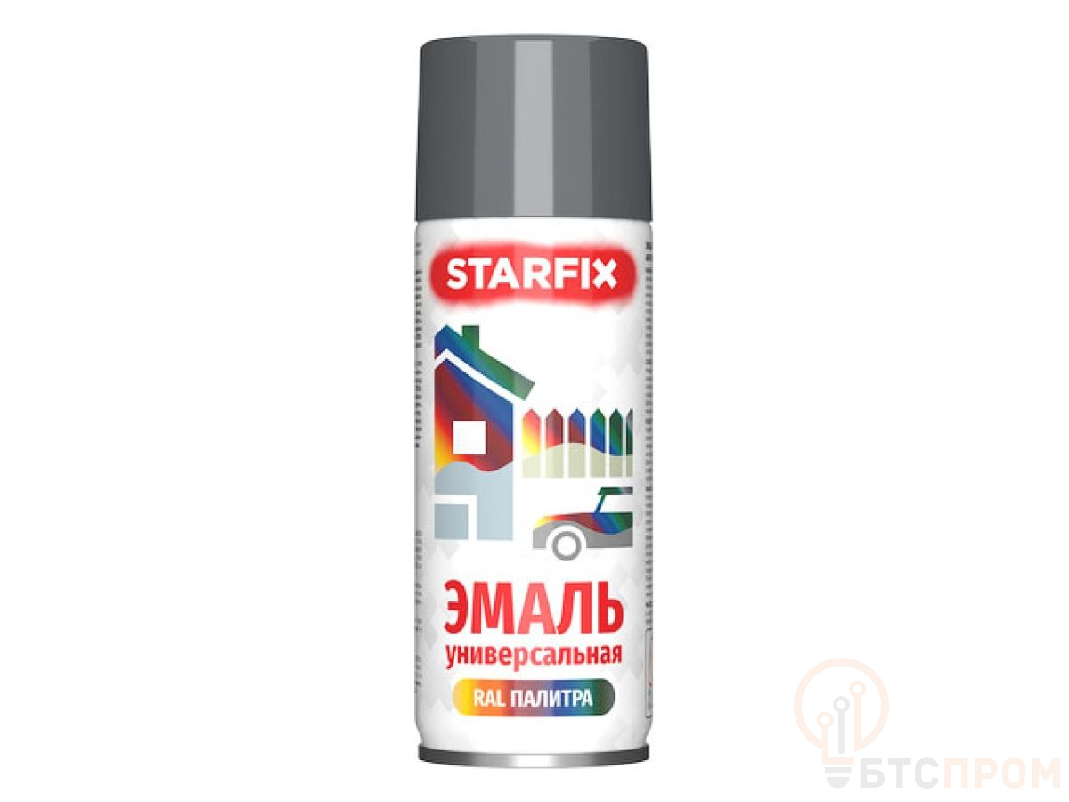 Краска-эмаль аэроз. универсальная серый STARFIX 520мл (7024) (Графитовый серый, глянцевая) SM-101052-1