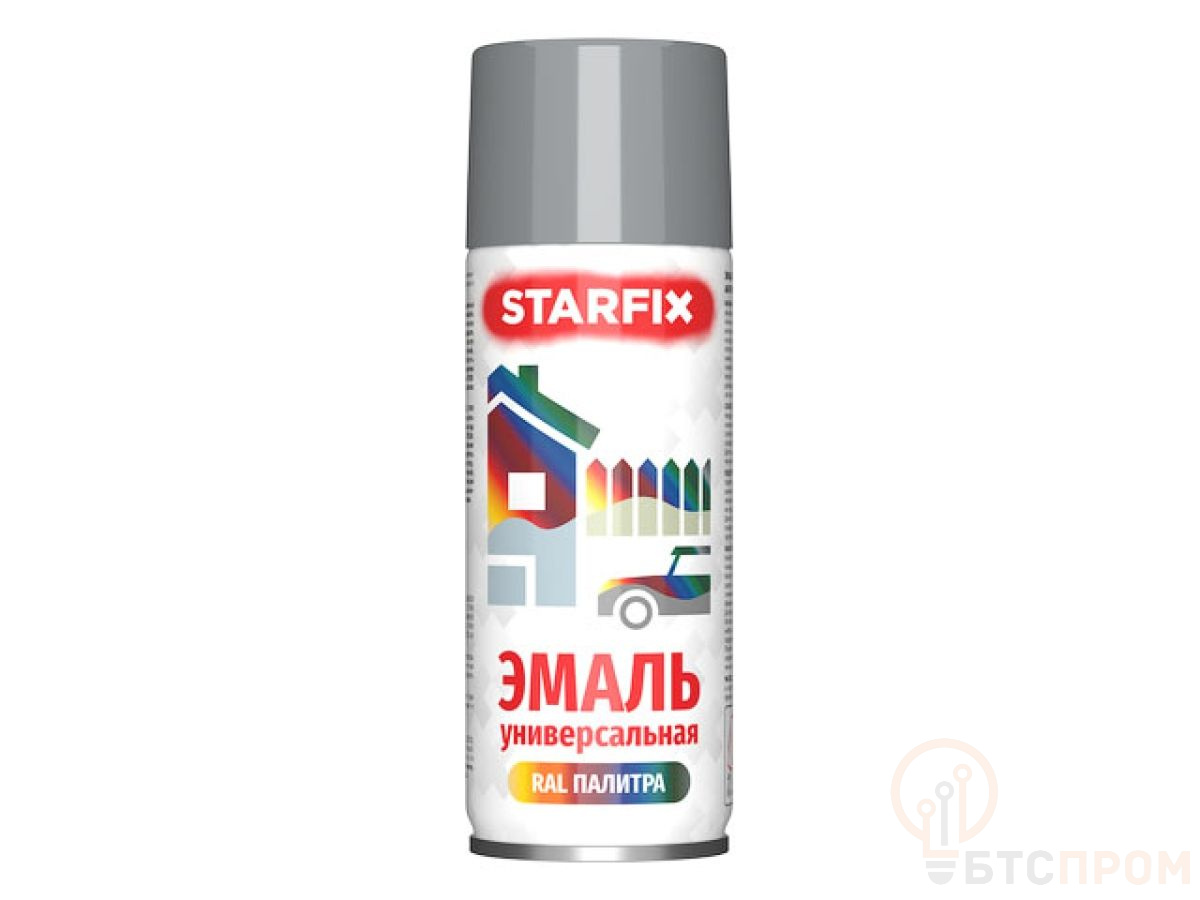 Краска-эмаль аэроз. универсальная серый светлый STARFIX 520мл (7046) (Телегрей 2, глянцевая) SM-101074-1