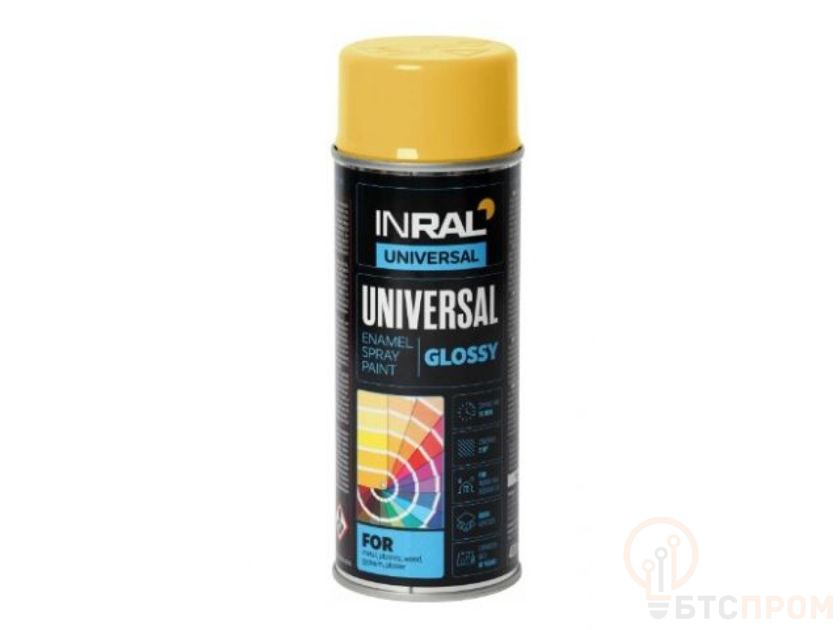 Краска-эмаль аэроз. универсальная светло-желтый INRAL 400мл (1003) (Цвет светло-желтый глянц.) 26-7-6-040