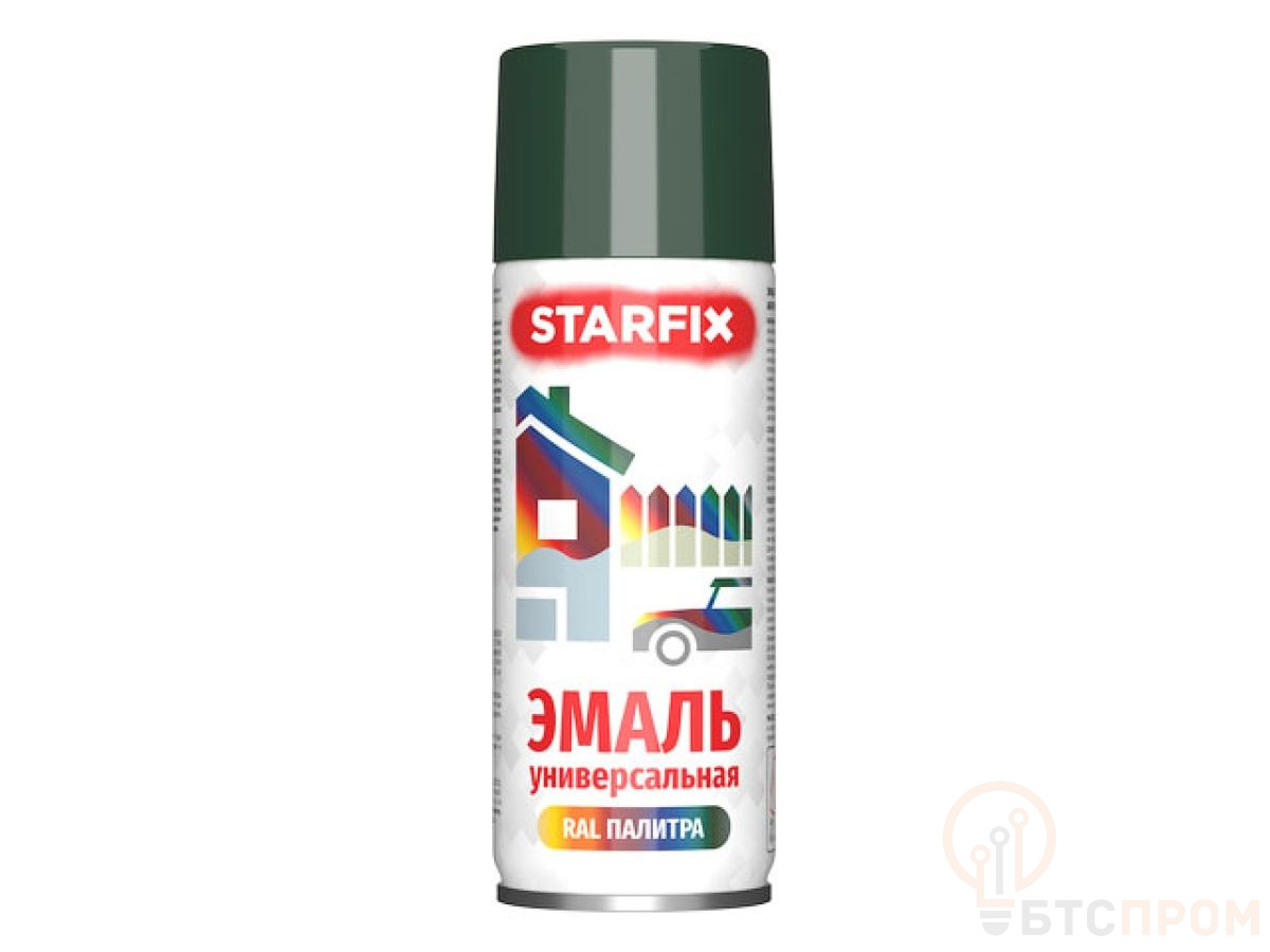 Краска-эмаль аэроз. универсальная зеленый темный STARFIX 520мл (6009) (Пихтовый зеленый, глянцевая) SM-100037-1