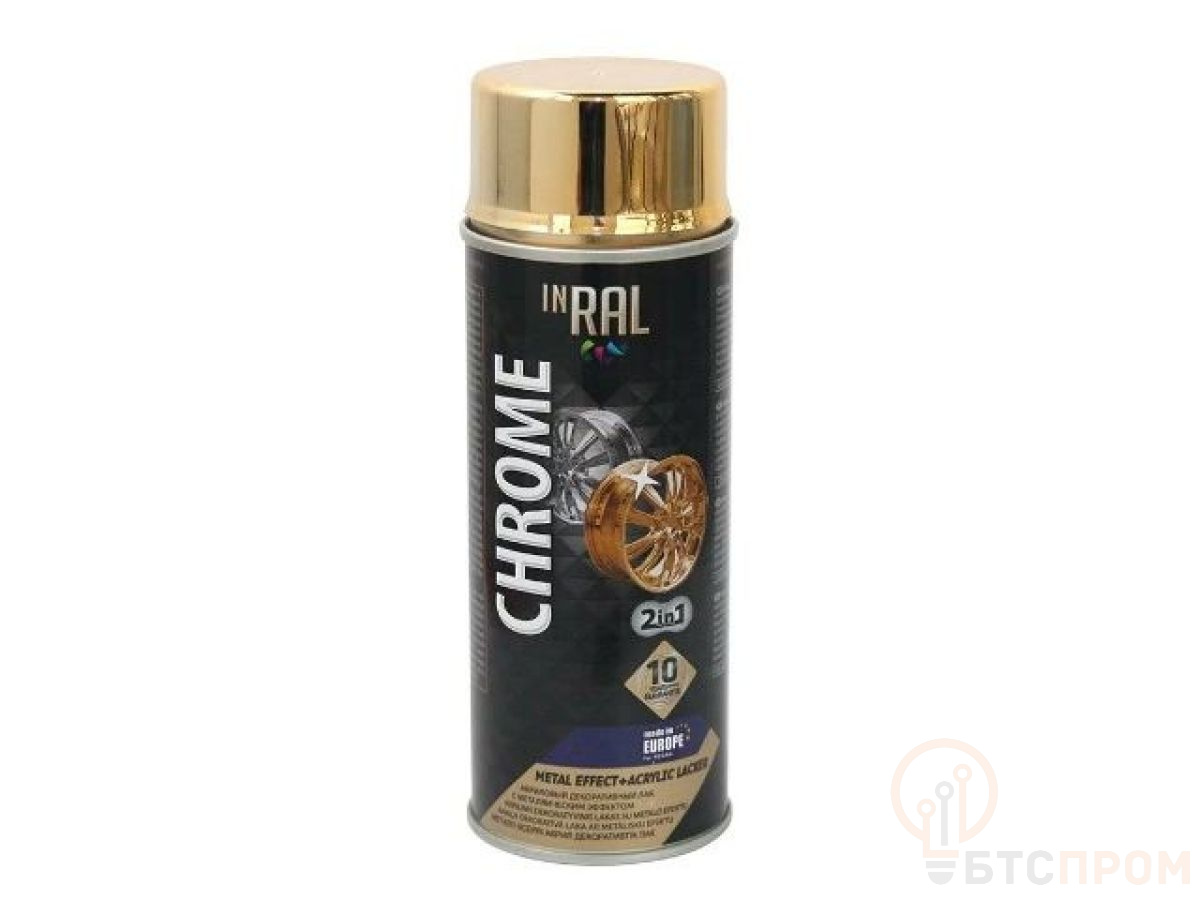 Лак декоративный акриловый золотой INRAL CHROME METAL EFFECT+ 400мл 26-7-1-001 фото в каталоге от BTSprom.by