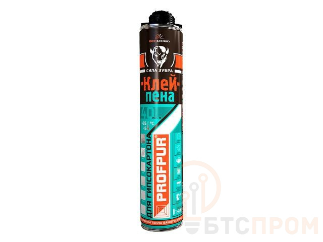 Клей-пена для приклеивания гипсокартона PROFPUR (750мл) (1 баллон = 25 кг сухой клеевой смеси) 4814016008167
