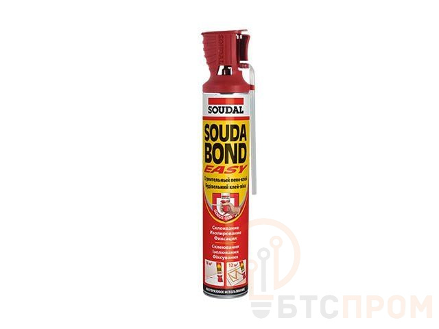 Клей-пена монтажная SOUDL Soudabond Easy 750 мл (146042) представляет собой быстросохнущий (олное отверждение около 60 минут) полиуретановый клей с запатентованным аппликатором Genius Gun с высокой производительностью для крепления гипсокартонных плит и панелей из пенопласта внутри и снаружи помещений. Обеспечивает дополнительную термо- и звукоизоляцию. Имеет отличную адгезию к большинству строительных материалов: кирпичу, бетону, штукатурке, гипсу, дереву, металлу и пластмассе. Возможно окрашивание.