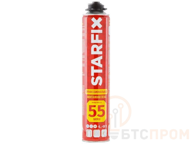 Пена монтажная профессиональная всесезонная STARFIX Gunfoam (730мл) (Выход пены до 55 литров) SM-88276-1