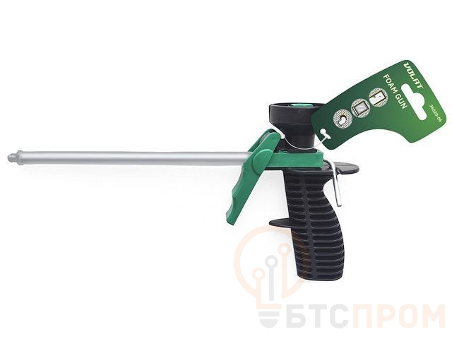 Назначение: применяется для нанесения монтажной пены, обеспечивая намного более точное дозирование и аккуратное ее нанесение. К тому же пистолет предохраняет содержимое баллона от быстрого затвердевания, позволяя тем самым использовать один баллон спустя значительный промежуток времени (при условии, что он останется подсоединен к пистолету, а клапан подачи пены на пистолете будет перекрыт и не будет доступа кислорода);
