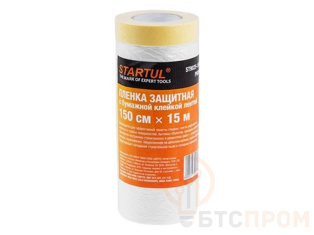 Пленка защитная с бумажной клейкой лентой 150смх15м STARTUL PROFI (ST9025-150) (для внутренних работ, укрывная) ST9025-150