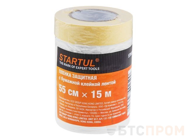 Пленка защитная с бумажной клейкой лентой 55смх15м STARTUL PROFI (ST9025-055) (для внутренних работ, укрывная) ST9025-055