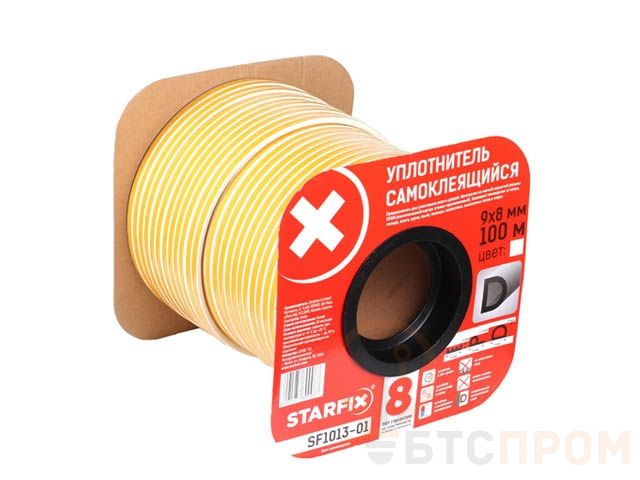 Уплотнитель "D" белый  9х8мм 100м (сдвоенный профиль 2х50м) STARFIX SF1013-01 фото в каталоге от BTSprom.by