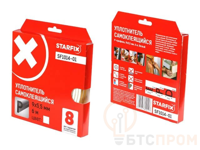 Уплотнитель "P" белый  9х5,5мм 6м (сдвоенный профиль 2х3м) STARFIX SF1014-01 фото в каталоге от BTSprom.by
