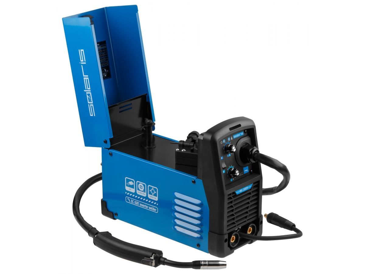 Полуавтомат сварочный Solaris MIG-200EM (220В, MIG/FLUX/MMA, встр. горелка 2 м, смена полярности, катушка 1 кг) MIG-200EM