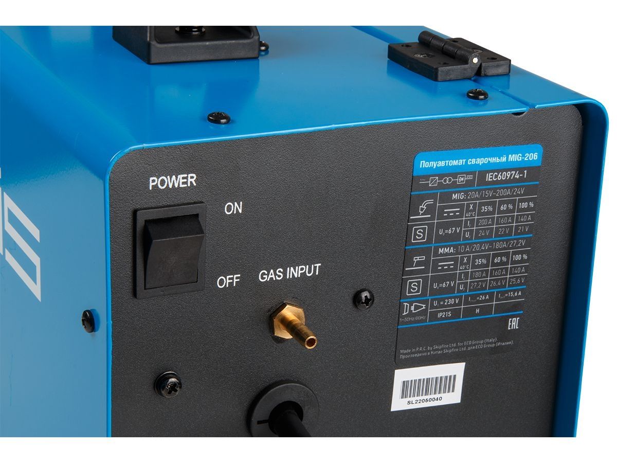 Полуавтомат сварочный Solaris MIG-206 (230В, MIG/FLUX/MMA, встроенная горелка 2 м, смена полярности) MIG-206