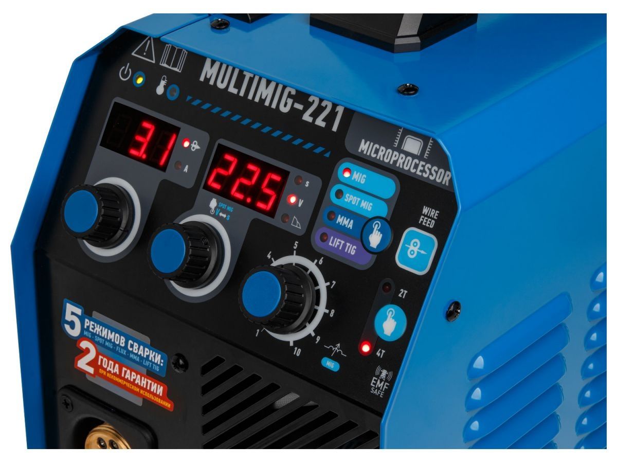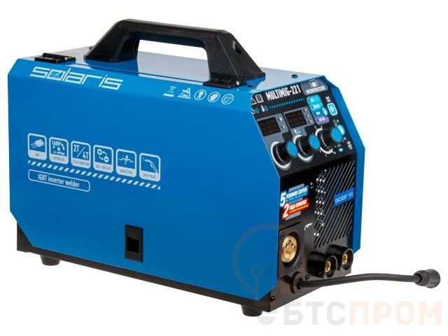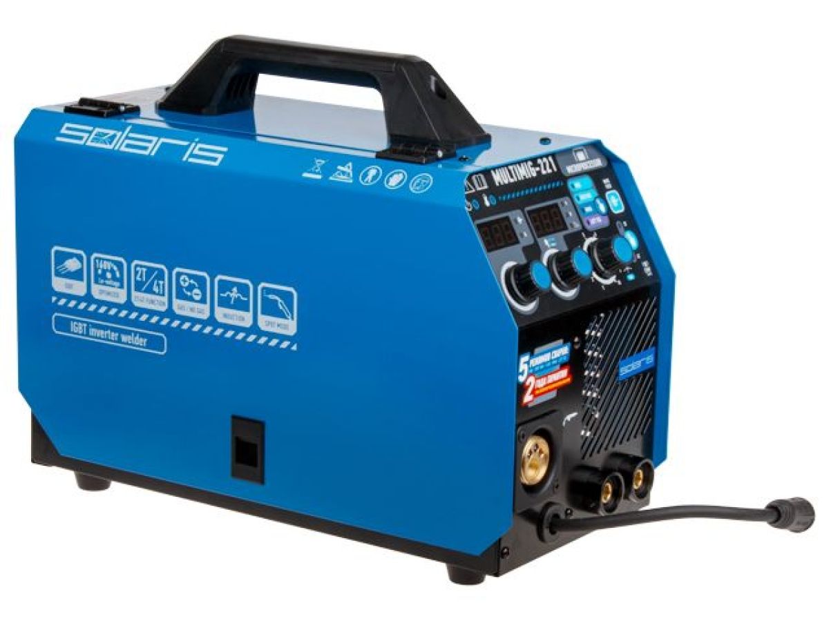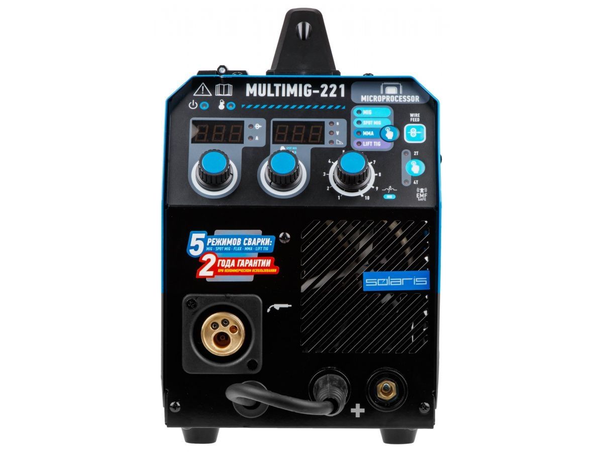 Полуавтомат сварочный Solaris MULTIMIG-221 (230В, MIG/SPOT/FLUX/MMA/TIG, евроразъем, горелка 3 м, смена полярности, 2T/4T, рег.индуктивн.) MULTIMIG-221