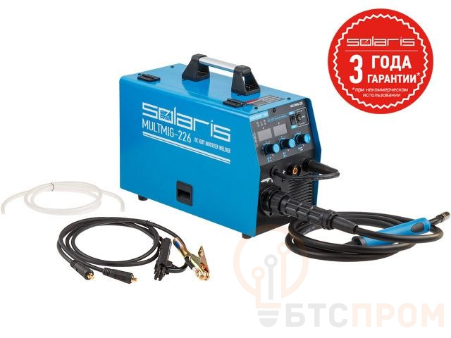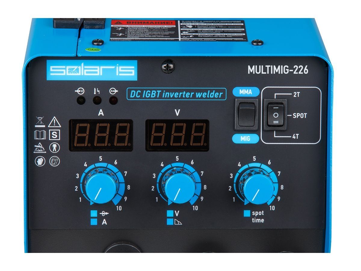 Полуавтомат сварочный Solaris MULTIMIG-226 (230В, MIG/FLUX/MMA, евроразъем, горелка 3 м, смена полярности, 2T/4T/Spot) MULTIMIG-226