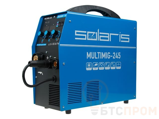 Полуавтомат сварочный Solaris MULTIMIG-245 (230В, MIG/FLUX/MMA/TIG, евроразъем, горелка 3 м, смена полярности, 2T/4T, рег-ка индуктивн.) MULTIMIG-245