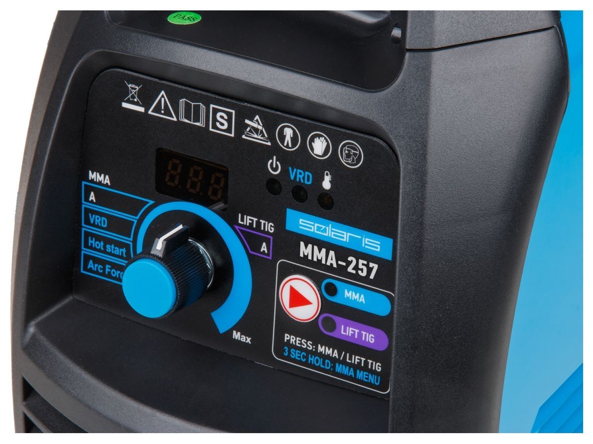 Инвертор сварочный SOLARIS MMA-257 (230В, 20-200 А, 82В, электроды диам. 1.6-5.0 мм, вес 5.2 кг) MMA-257