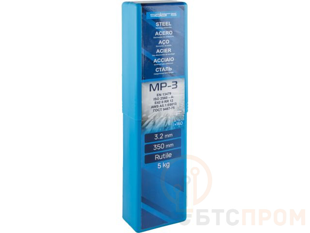 Универсальные сварочные электроды SOLARIS MP-3 с рутиловым покрытием для ручной дуговой сварки конструкций из углеродистых и низколегированных сталей на переменном сварочном токе (AC) или постоянном сварочном токе прямой (DC -) и обратной полярности (DC +) во всех пространственных положениях.