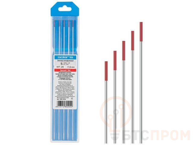Электрод с содержанием оксида тория ThO2 (массовое содержание от 1,7 до 2,2 %).