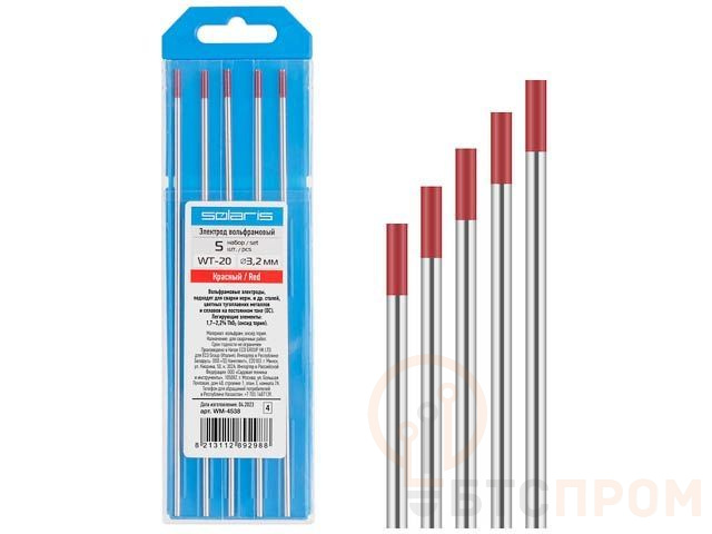 Электрод с содержанием оксида тория ThO2 (массовое содержание от 1,7 до 2,2 %).