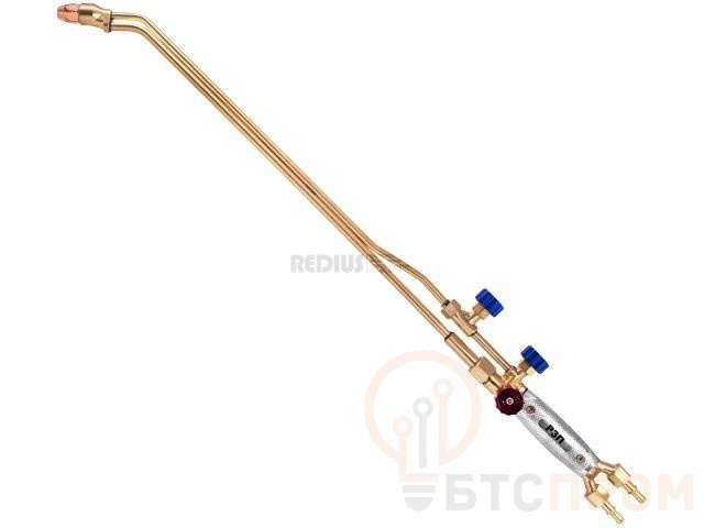 Резак инжекторный пропано-кислородный предназначен для резки раскроя и разогрева деталей, заготовок, листового и сортового проката из черных металлов. Резак выполнен разборным и имеет возможность замены ствола (наконечника) в случае его выхода из строя, без замены вентильного блока и рукоятки.