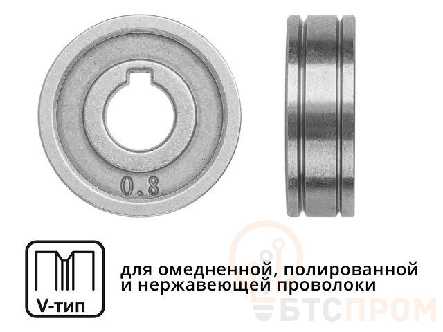 Ролик подающий ф 30/10 мм, шир. 10 мм, проволока ф 0,6-0,8 мм (V-тип) (для твердой проволоки: омедненная, полированная, нержавеющая) (SOLARIS) WA-2471