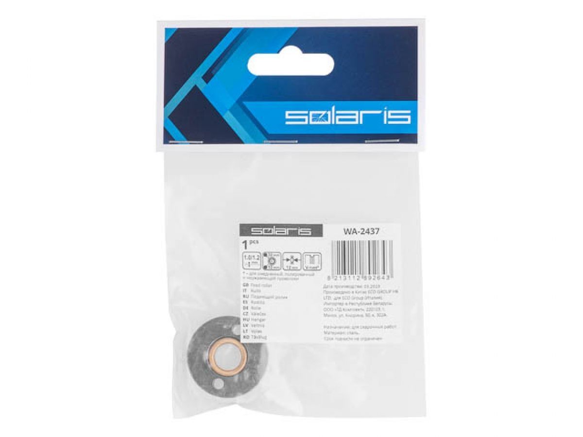 Ролик подающий ф 30/10 мм, шир. 12 мм, проволока ф 1,0-1,2 мм (V-тип) (для твердой проволоки: омедненная, полированная, нержавеющая) (SOLARIS) WA-2437