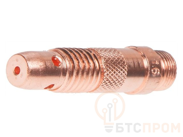 Зажим цанги является расходным элементом TIG горелки. Предназначен для фиксации электрода с цангой в TIG горелке. Отверстия на зажиме служат для распределения потока защитного газа.