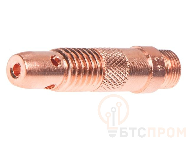 Зажим цанги является расходным элементом TIG горелки. Предназначен для фиксации электрода с цангой в TIG горелке. Отверстия на зажиме служат для распределения потока защитного газа.