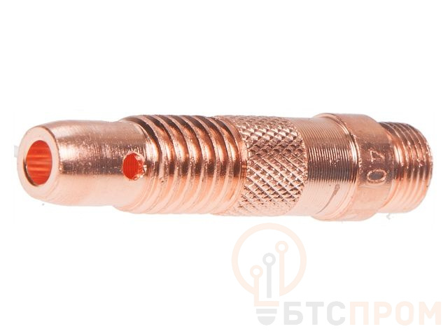Зажим цанги является расходным элементом TIG горелки. Предназначен для фиксации электрода с цангой в TIG горелке. Отверстия на зажиме служат для распределения потока защитного газа.