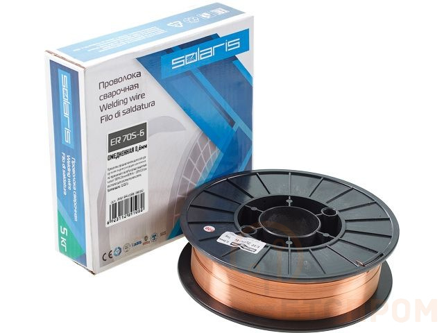 Проволока сварочная омедненная ER 70S-6 ф0,6мм (катушка D200 5 кг) SOLARIS (аналог СВ08Г2С) WM-ER70S6-06050