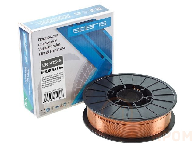 Проволока сварочная омедненная ER 70S-6 ф1,0мм (катушка D200 5 кг) SOLARIS (аналог СВ08Г2С) WM-ER70S6-10050