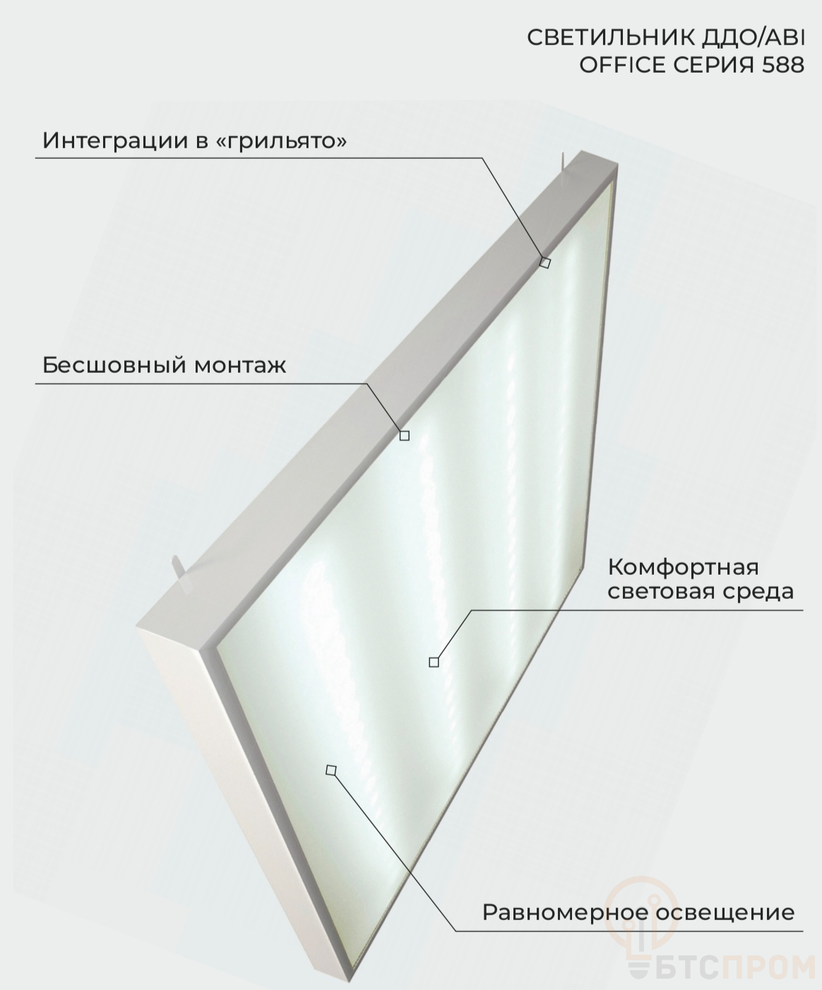 Светильник ДДО/ABI OFFICE 02/18 Вт из серии 588 — это современное и энергоэффективное решение для основного освещения административных, коммерческих и общественных помещений. Модель оснащена двумя люминесцентными лампами по 18 Вт каждая, что обеспечивает качественный рассеянный свет без бликов, комфортный для длительной работы.