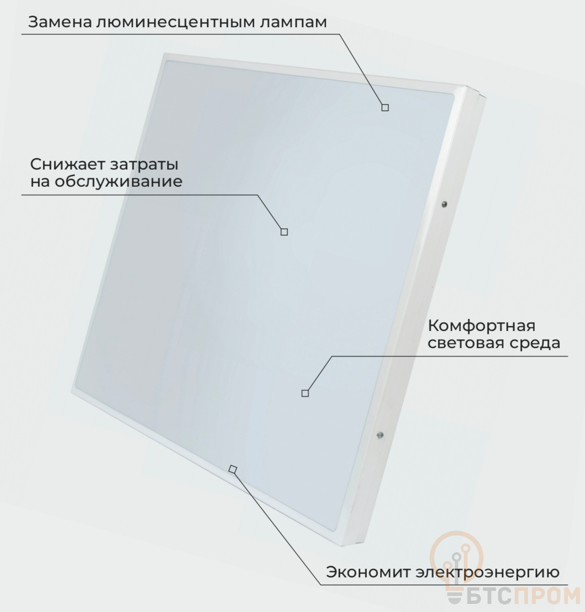 Корпус выполнен из высококачественной оцинкованной стали с белым порошковым покрытием, устойчивым к коррозии и механическим воздействиям. Рассеиватель из прозрачного полистирола эффективно защищает лампы и способствует комфортному светораспределению. Стандартная комплектация включает пускорегулирующую аппаратуру (ПРА).