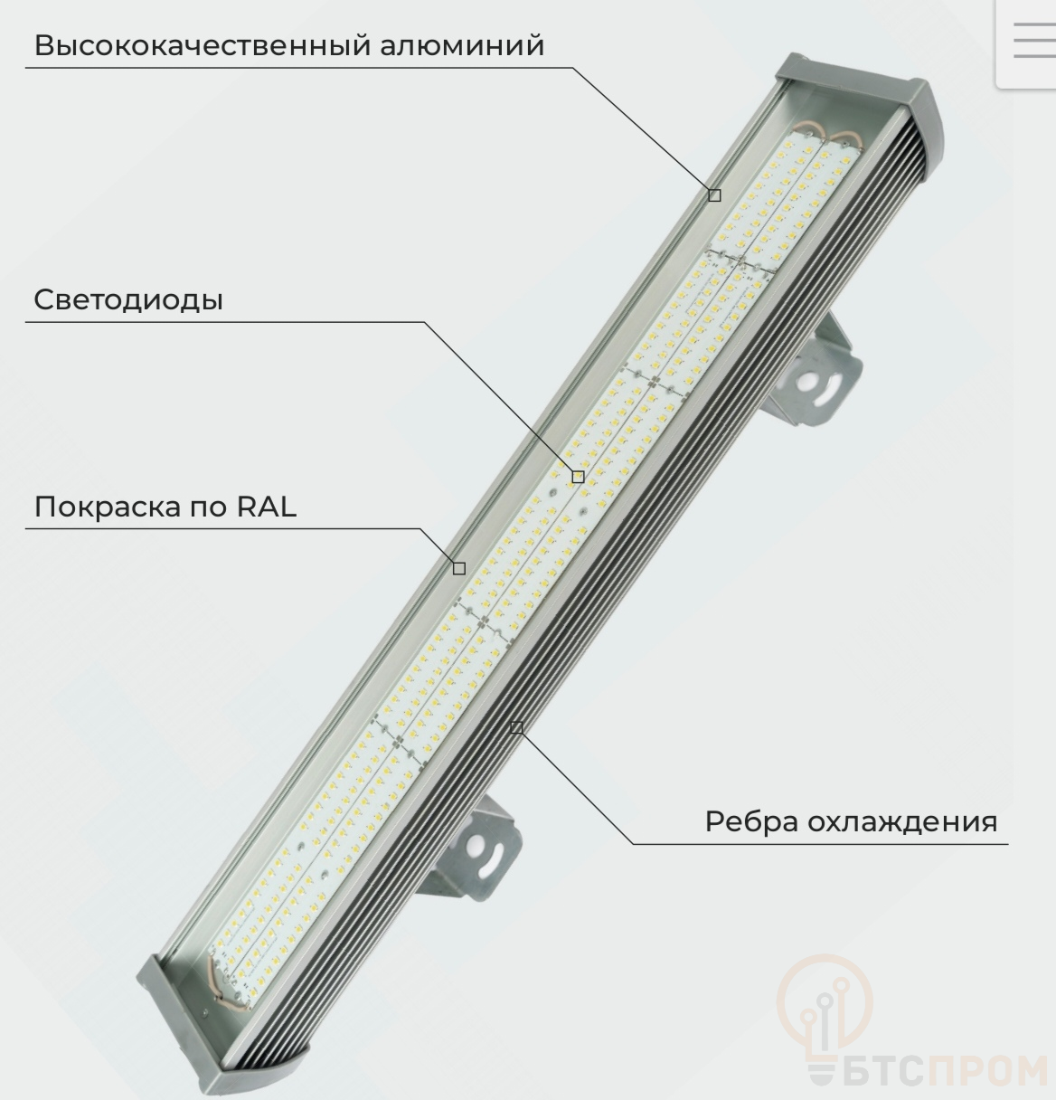 Идеально подходит для освещения цехов, складов, автомоек, сельскохозяйственных помещений, гаражей и других объектов с повышенными требованиями к влаго- и пылезащите.