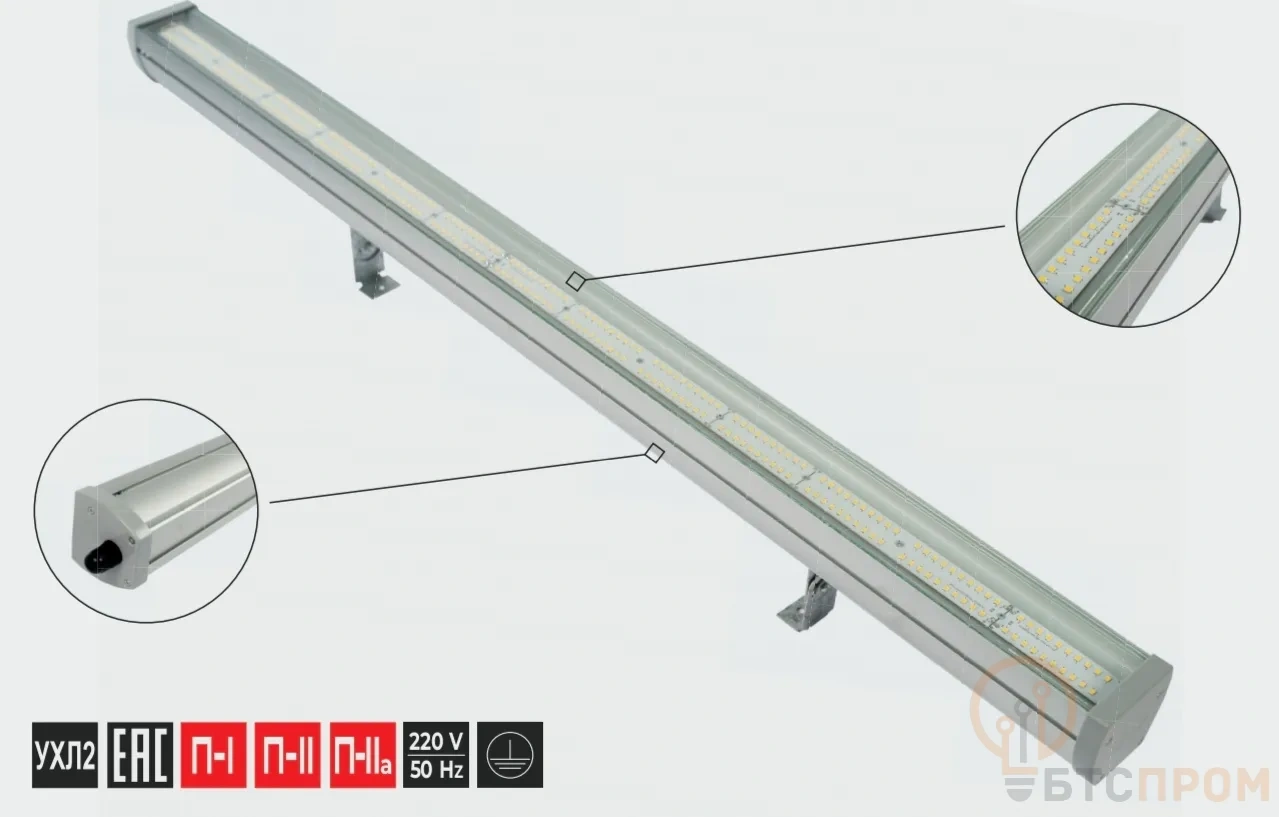 Прочное закаленное стекло и ударопрочная конструкция обеспечивают долгий срок службы. Светильник LINE PRO предназначен для продолжительной работы и отличается минимальными затратами на обслуживание, являясь оптимальным выбором для задач технологического и аварийного освещения.
