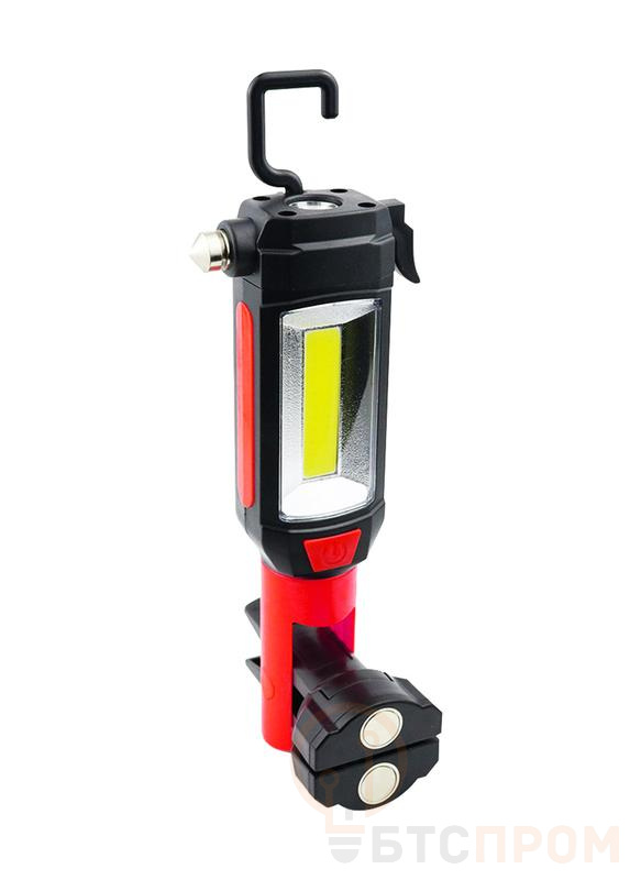 Фонарь-светильник 2-в-1 с дополнительным лучом. 7 дополнительных функций для автомобилистов – аварийный молоток, нож для ремней, складной крючок и магнит для крепления к металлу, струбцина с регулировкой угла наклона. Совмещает широкий свет (освещает широкое пространство с одной стороны, удобен для работы вблизи) и луч фонаря (светит как фара автомобиля, направленный свет с ярким пятном засветки в центре) и. Площадь освещения светильника - 36 кв.м, время беспрерывной работы – до 7 ч. Длина луча – 46 м, время беспрерывной работы – до 10 ч. Работает от 3 батареек ААА. Упакован в коробку с подробной информацией о модели и схемой фонаря.