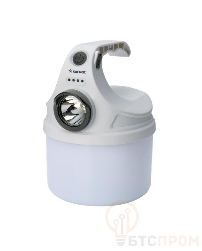 Фонарь аккумуляторный кемпинговый походный 10Вт SMD LED+2Вт LED Li-ion 18650 800мА.ч корпус ABS-пластик индикатор уровня заряда USB-шнур матовый рассеиватель КОСМОС KOC614Lit