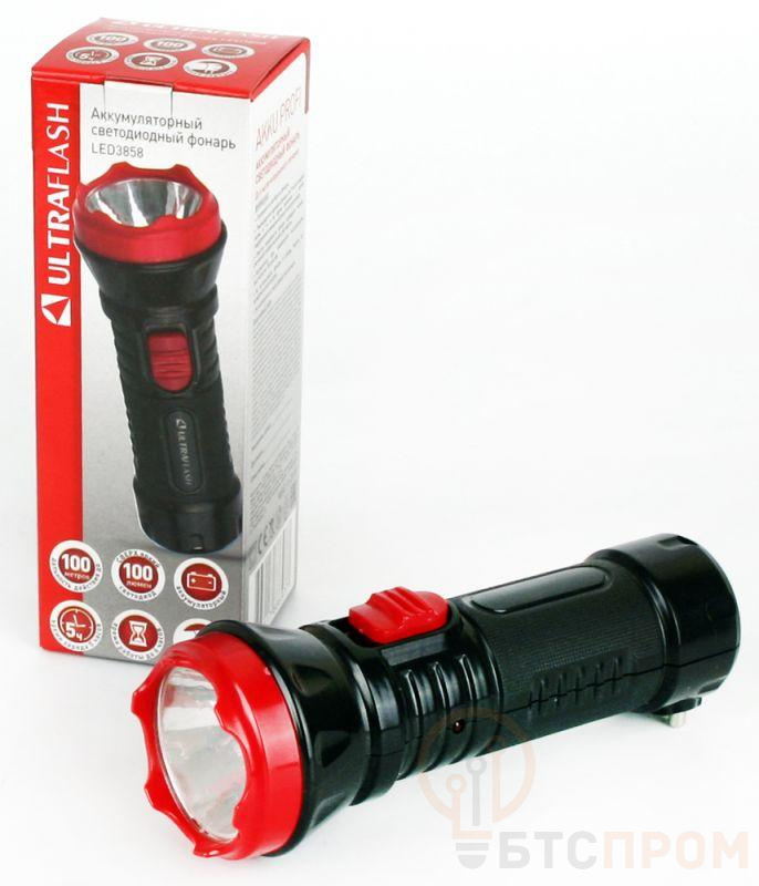 Фонарь аккумуляторный LED3858 1 LED 2 режима SLA 220В пластик коробка черн. Ultraflash 13937 фото в каталоге от BTSprom.by