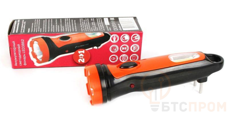 Фонарь аккумуляторный LED3862 220В 1+COB LED 2 режима SLA пластик коробка черн./оранж. Ultraflash 14513