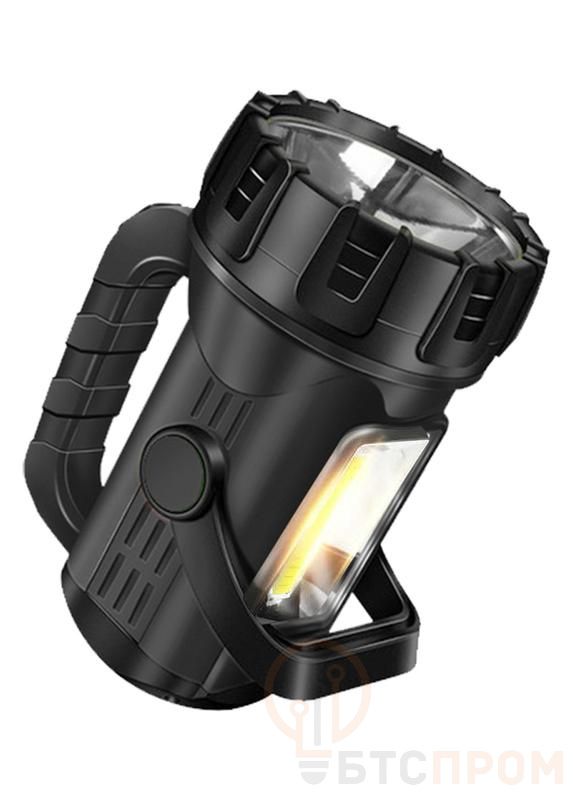 Ручной фонарь 2-в-1 со встроенным светильником на 180 градусов. Впервые: умный индикатор покажет точный уровень заряда. Функция Power bank – от фонаря можно подзарядить телефон. Совмещает луч фонаря (светит как фара автомобиля, направленный свет с ярким пятном засветки в центре) и широкий свет (освещает широкое пространство с одной стороны, удобен для работы вблизи). Длина луча – 290 м, время беспрерывной работы – до 5 ч в режиме основного света, до 10 в режиме эконом. Площадь освещения светильника - 32 кв.м, время беспрерывной работы – до 5 ч в режиме основного света, до 10 в режиме эконом. 5 режимов работы – яркий и экономичный для каждого источника света и режим красного света. Современный литиевый аккумулятор 3,7В 3600 мАч, подзарядка от USB. Упакован в коробку с подробной информацией о модели и схемой фонаря.
