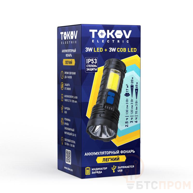 Фонарь аккумуляторный ручной 1200мА.ч COB LED TOKOV ELECTRIC TKE-RF-A-09 фото в каталоге от BTSprom.by
