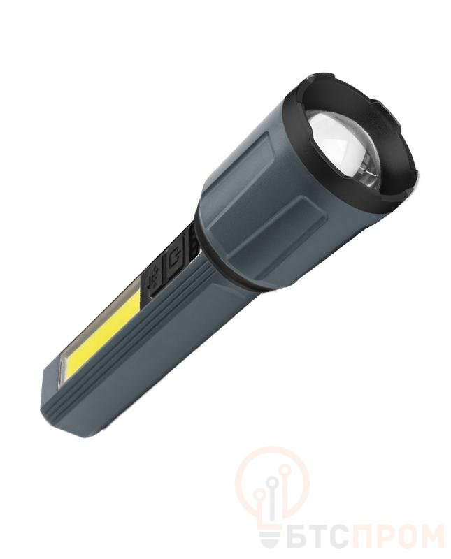 Фонарь аккумуляторный ручной 3Вт LED+5Вт COB LED zoom-линза Li-ion 18650 1200мА.ч корпус ABS-пластик индикатор уровня заряда USB-шнур в комплекте КОСМОС KOC124Lit