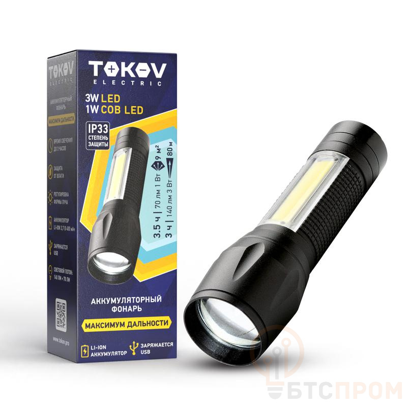Фонарь аккумуляторный ручной ABS маленький корпус черн. TOKOV ELECTRIC TKE-RF-A-05 фото в каталоге от BTSprom.by